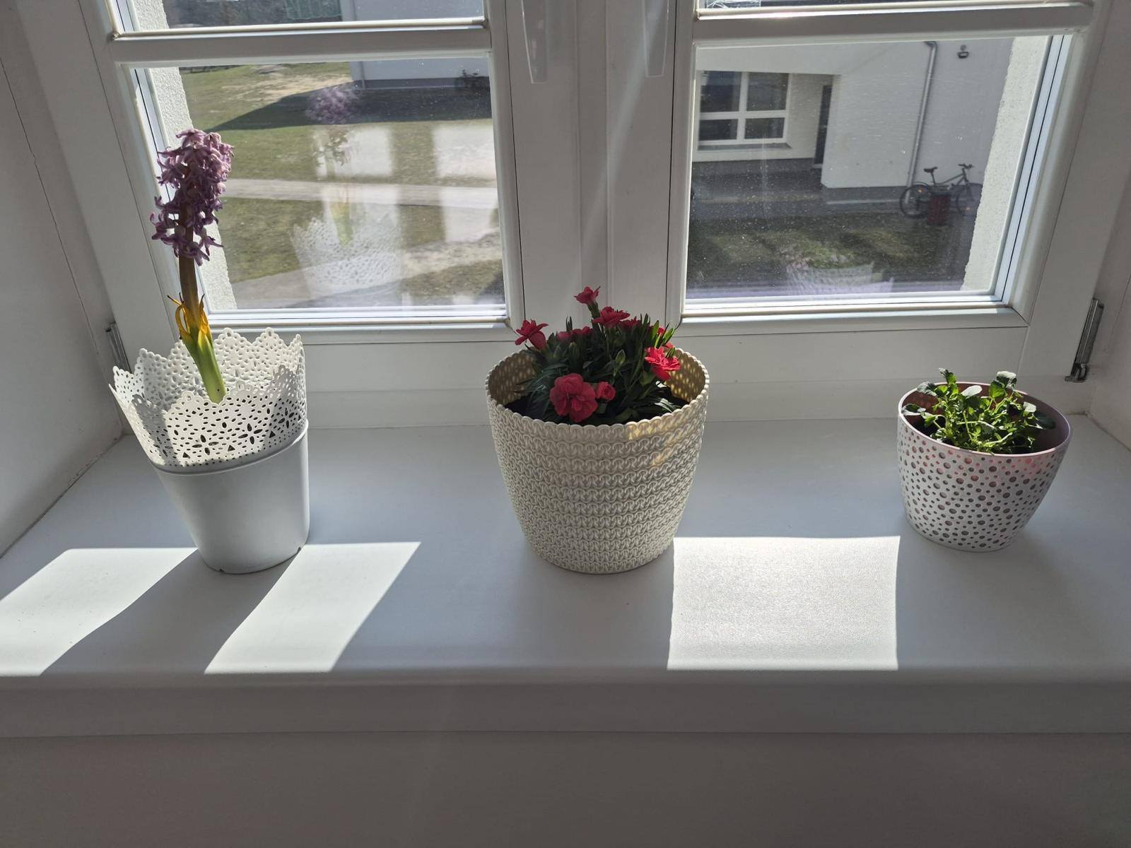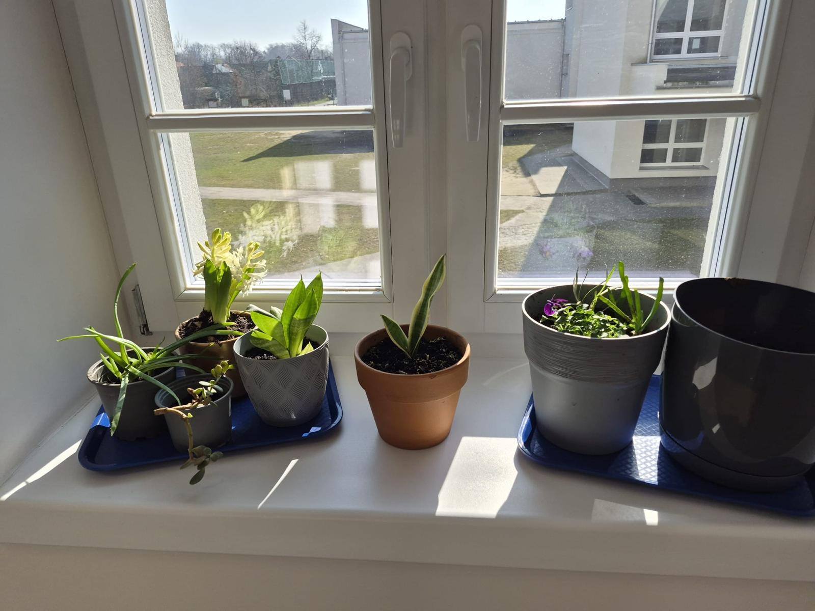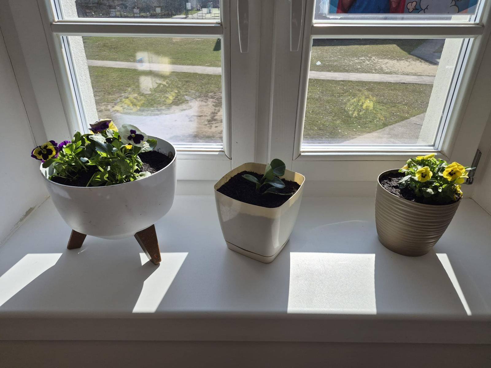 Dzięki ich pracy nasze okna zyskały piękną, zieloną dekorację – teraz zdobią je kolorowe kwiaty, które wprowadzają do sali jeszcze więcej radości i świeżości.