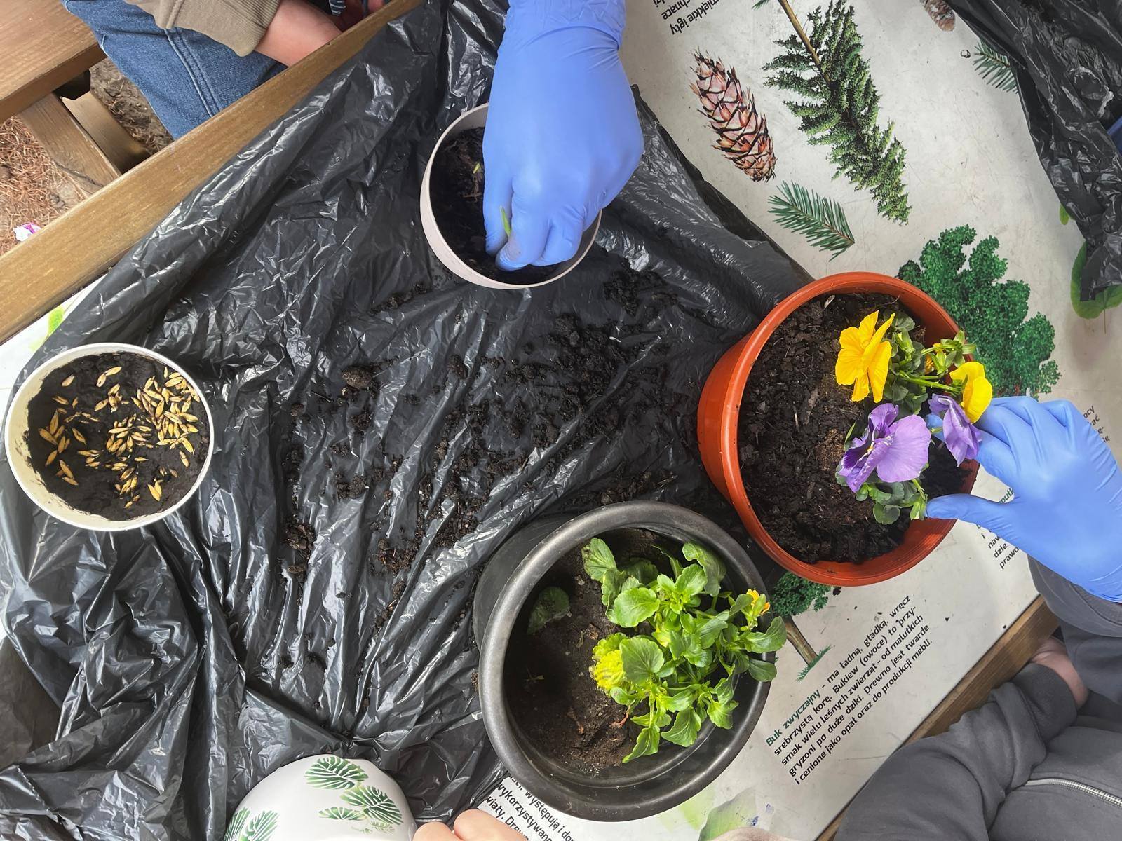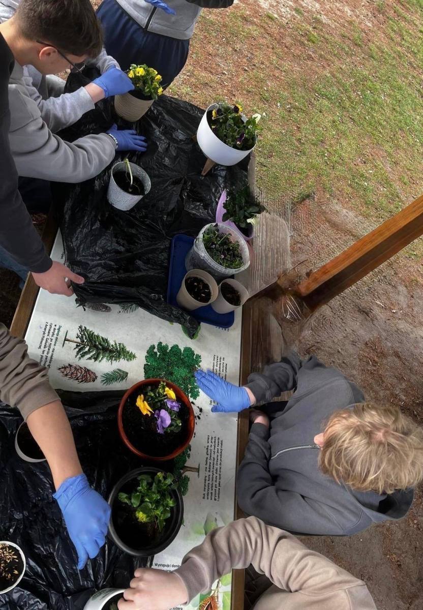 Z ogromnym zaangażowaniem sadzili rośliny, ucząc się jednocześnie troski o środowisko i odpowiedzialności za naturę.